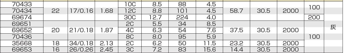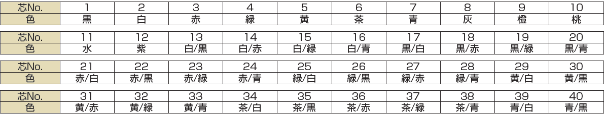 ※表中の(白/黒)は白絶縁体に、黒の両面埋め込みストレートマークを施す事を示す。