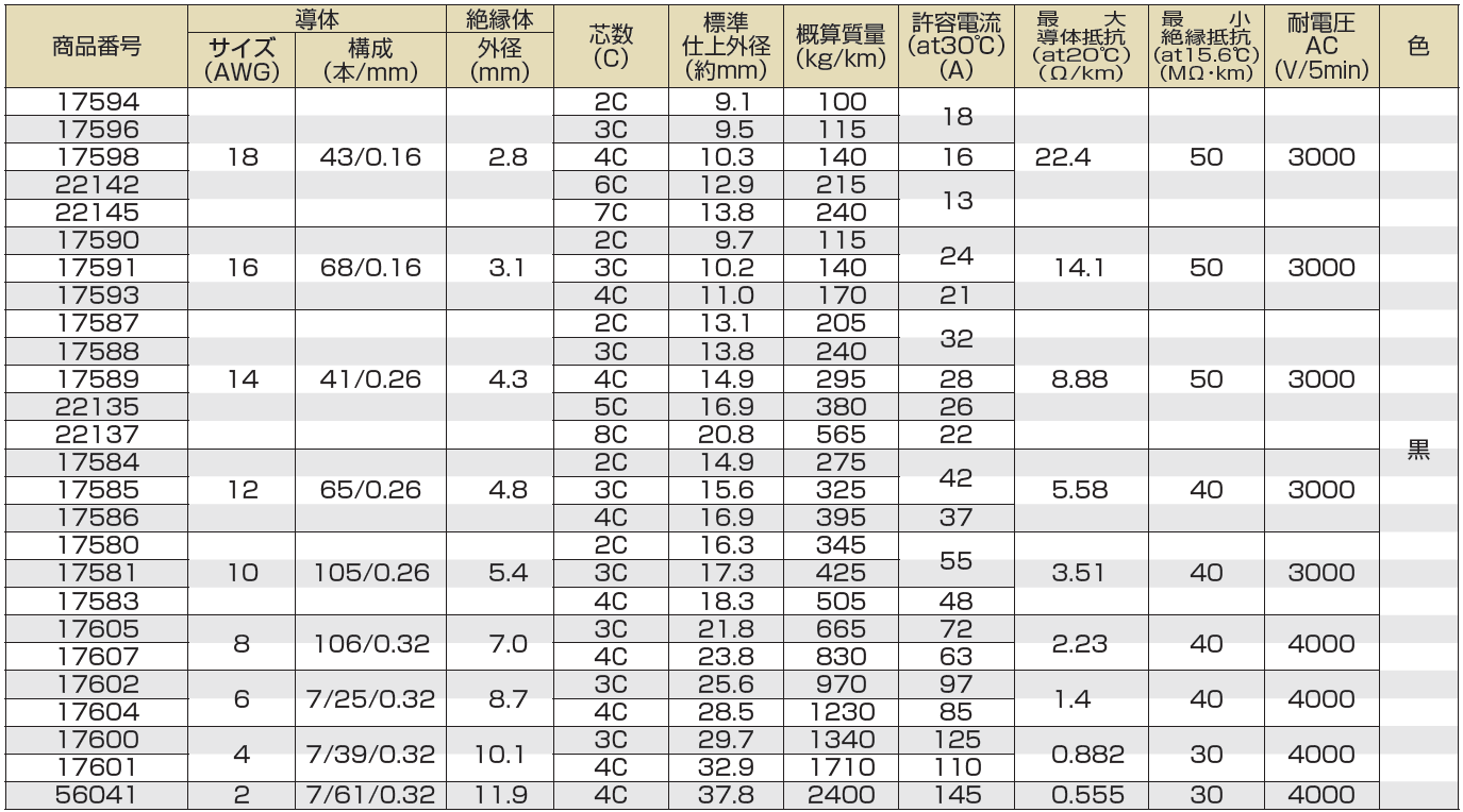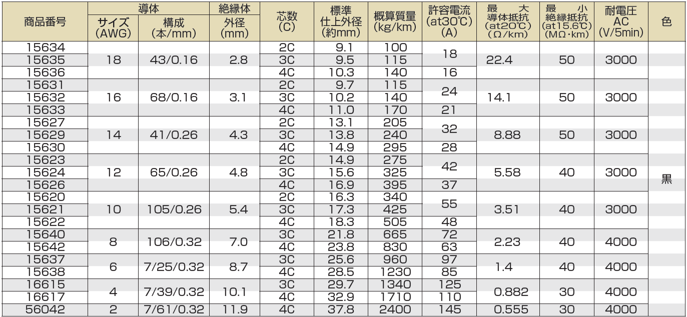 ※許容電流値は「JCS0168-1」により計算した値で、保証値ではありません。