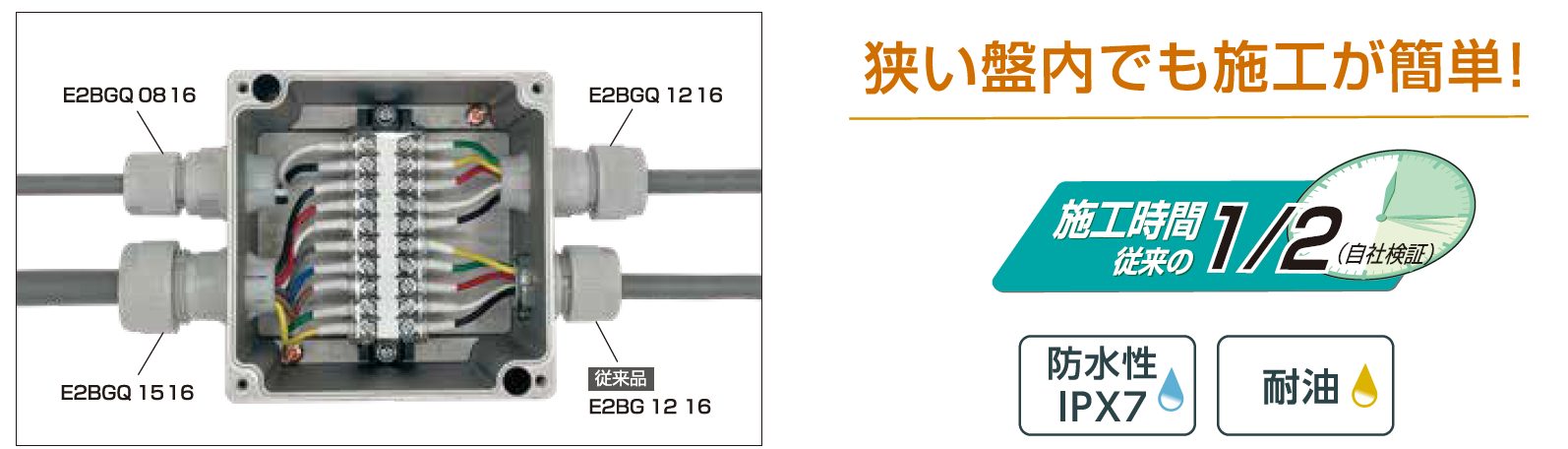 ※E2BGQ1516は、挿入するケーブルの外側シースを剥ぎ取って使用すれば、φ16の外径のシースにも適用できます。