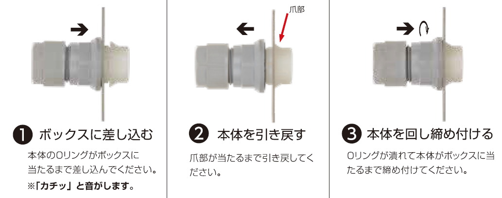 3アクションで施工可能。修理メンテナンス作業での取り外しも容易にできます。